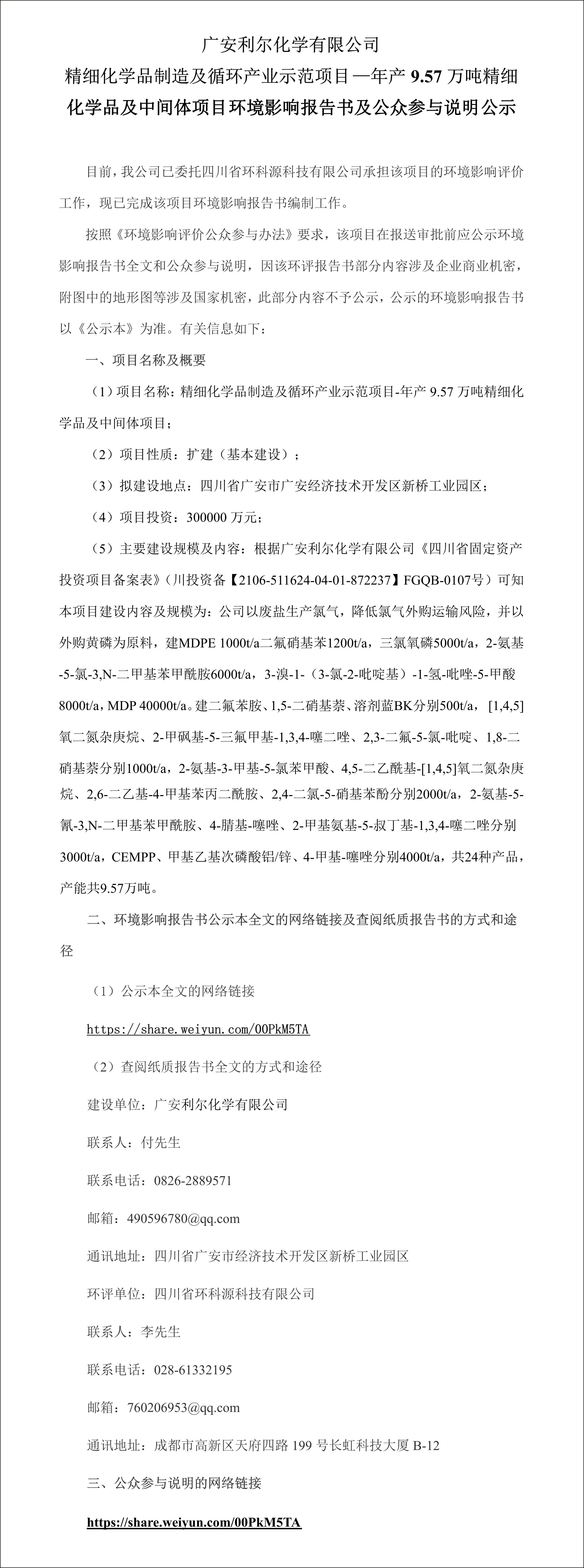 利爾化學股份有限公司擬對“2022年度國內(nèi)段公路運輸物流服務”項目進行國內(nèi)公開招標,茲邀請符合本次招...