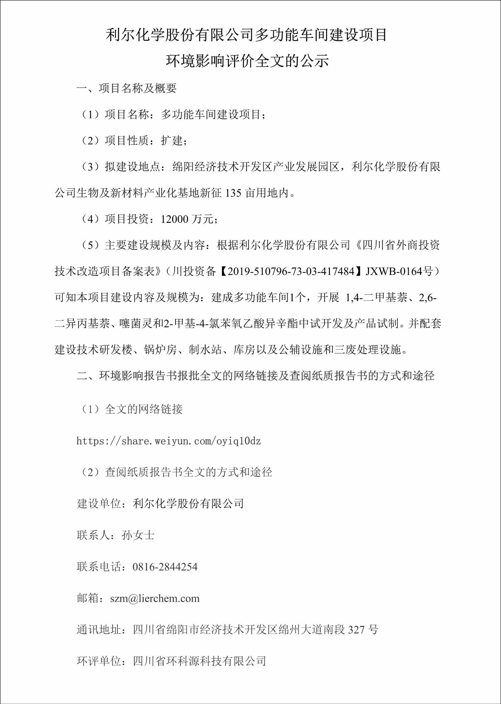 根據(jù)《建設(shè)項(xiàng)目竣工環(huán)境保護(hù)驗(yàn)收暫行辦法》,現(xiàn)將四川利爾作物科學(xué)有限公司“年產(chǎn)2萬噸環(huán)保制劑生產(chǎn)線建...
